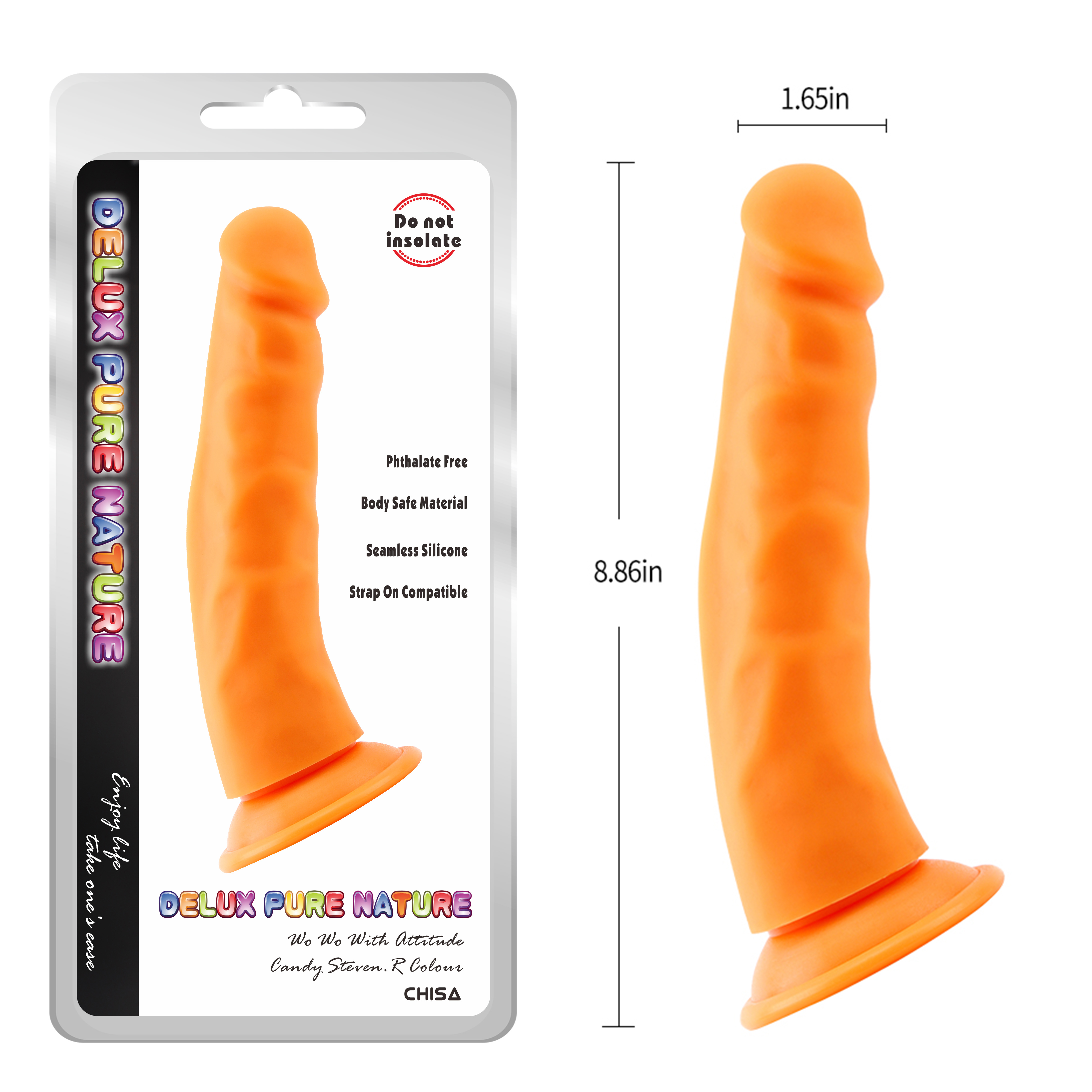Doživite blaženstvo sa Steven.R-Orange. Njegov ergonomski dizajn i vrhunski materijal pružaju intenzivno zadovoljstvo. Svestran za solo ili zajedničku igru, zadovoljava različite želje. Napravljen za udobnost i zadovoljstvo, prepustite se nezaboravnim trenucima intimnosti. Oslobodite svoje fantazije sa ovom sofisticiranom igračkom dizajniranom da podiže zadovoljstvo.Kompatibilan sa strap on pojasom. Dužina 22.5cm ,širina 4.2cm. Preporučuje se upotreba lubrikanta na vodenoj bazi . Nakon upotrebe oprati mlakom vodom i sapunicom.