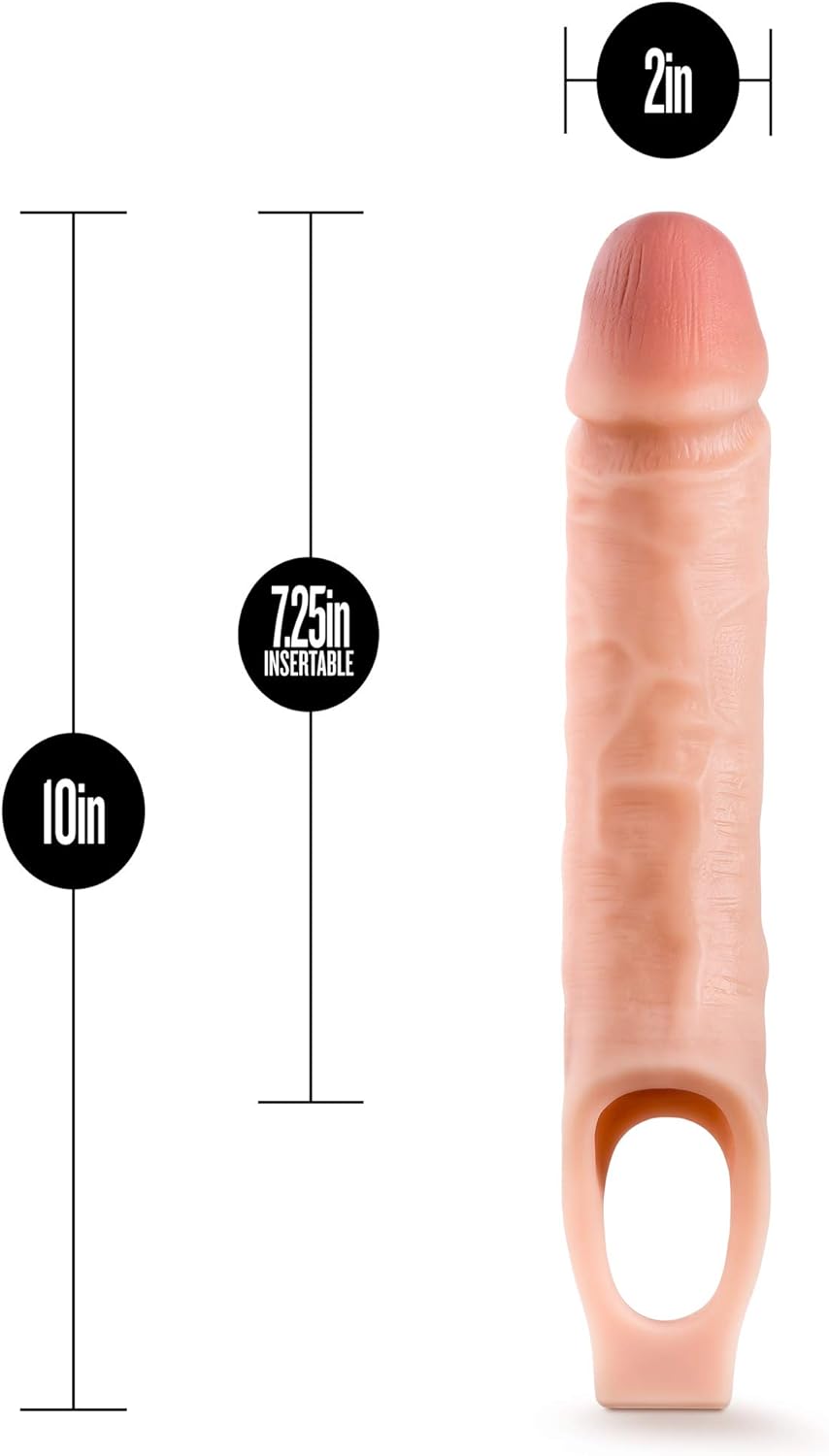 10-inčni Cock Sleeve je mekan i realističan za realističan osećaj poput pravog, ali veći. Unutrašnja rebra stvaraju usis koji bezbedno drži poklopac i pruža dodatni osećaj korisniku. Jednostavno umetnite penis u Performance 10 navlaku, a zatim provucite testise kroz prsten sa kuglom. Ovaj obodni omot je savršen za produženje vremena igre. Napravljen od vrhunskog TPE-a, bezbedan je za telo i lak za čišćenje. Dužina 25cm (18cm za umetanje) širina 5cm