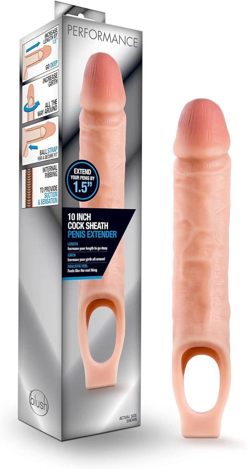 10-inčni Cock Sleeve je mekan i realističan za realističan osećaj poput pravog, ali veći. Unutrašnja rebra stvaraju usis koji bezbedno drži poklopac i pruža dodatni osećaj korisniku. Jednostavno umetnite penis u Performance 10 navlaku, a zatim provucite testise kroz prsten sa kuglom. Ovaj obodni omot je savršen za produženje vremena igre. Napravljen od vrhunskog TPE-a, bezbedan je za telo i lak za čišćenje.