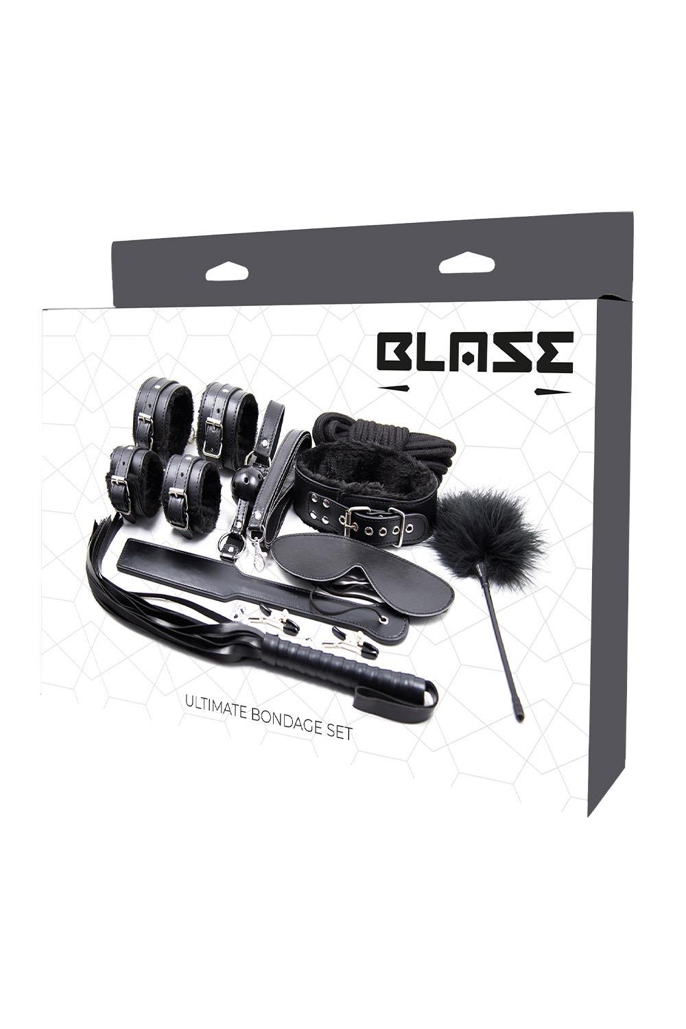 Ovaj Blaze set za vezivanje je vrhunski set za vezivanje za početnike, koji sadrži 10 predmeta: 1.Lizice za zglobove, 2.Lizice za članke, 3.Maska, 4.Vesla, 5.Bičevanje, 6.Perjasti škripac, 7.Ogrlica sa povodcem, 8.Kupčasta za usta, 9.Štipaljke za bradavice, 10.Kanap. 11.Stezaljke za zglobove i članke i ogrlica su obloženi mekom imitacijom krzna za luksuzan izgled i udobno nošenje. Veličina se može podesiti metalnim kopčama. Povodac koji izgleda kao koža može se pričvrstiti za ogrlicu pomoću kuke za mušketon i D-prstena. Čep za usta se može podesiti kopčom na kaišu za vrat, kuglica je glatka, bez ukusa i mirisa, i ostaje udobna za nošenje zahvaljujući otvorima za disanje. PVC navlaka na vrhovima metalnih štipaljki za bradavice štiti kožu. Pritisak se može podesiti zavrtnjima, za vrhunsku kontrolu stiska. Sa ovim setom za vezivanje moguće je uživati u mnogim različitim BDSM situacijama i položajima. Početnici mogu da se upoznaju sa igrom vezivanja i otkriju uzbuđenje koje igre sa majstorom i sub mogu da donesu. Iskusniji ljubitelji BDSM-a će u ovom setu pronaći sve što im je potrebno za dobru seansu vezivanja. Koristite set pažljivo i nikada ne ostavljajte vezanu osobu bez nadzora.